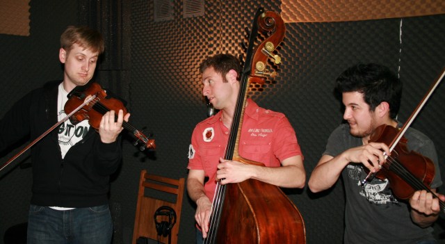 Today, I had the opportunity to help out at the Echoes studios before and during a live in-studio recording session with Time for Three, a rather fascinating Philadelphia-based “new classical” string trio. The group consists of Zachary De Pue and Nick Kendall on violins, and Ranaan Meyer on upright double bass.