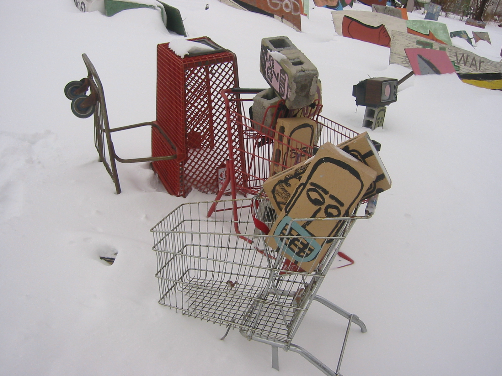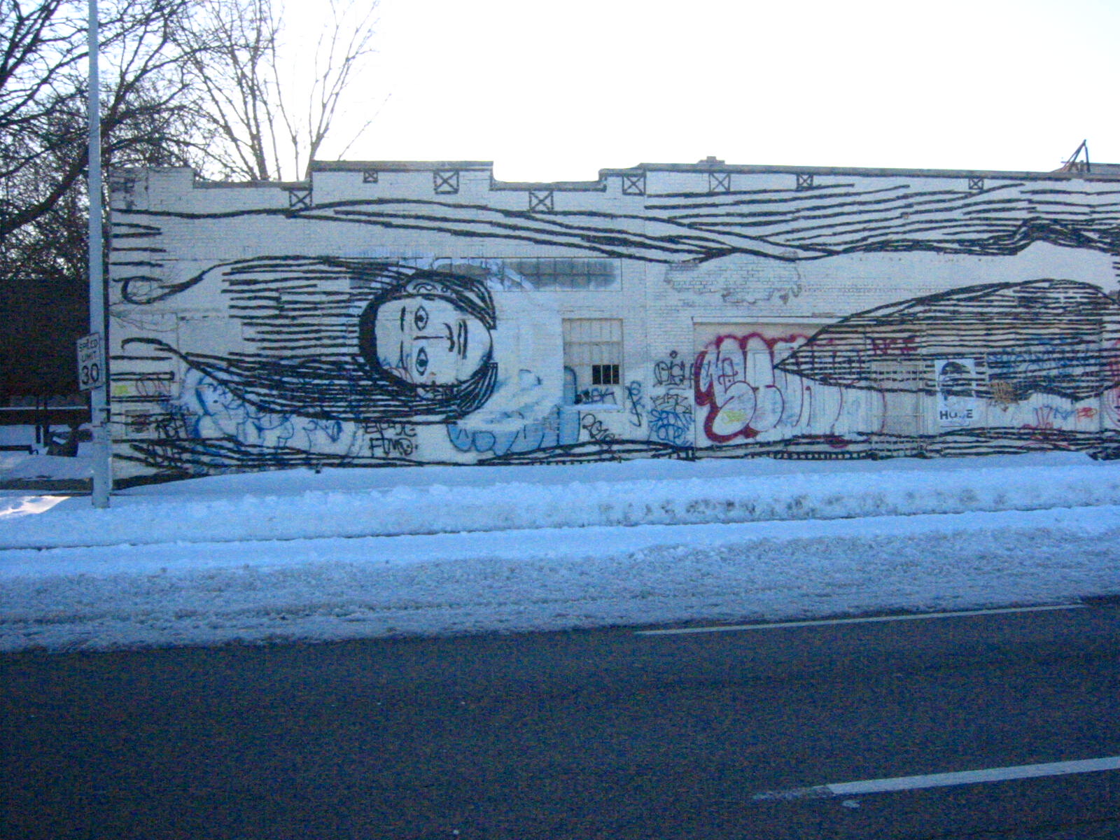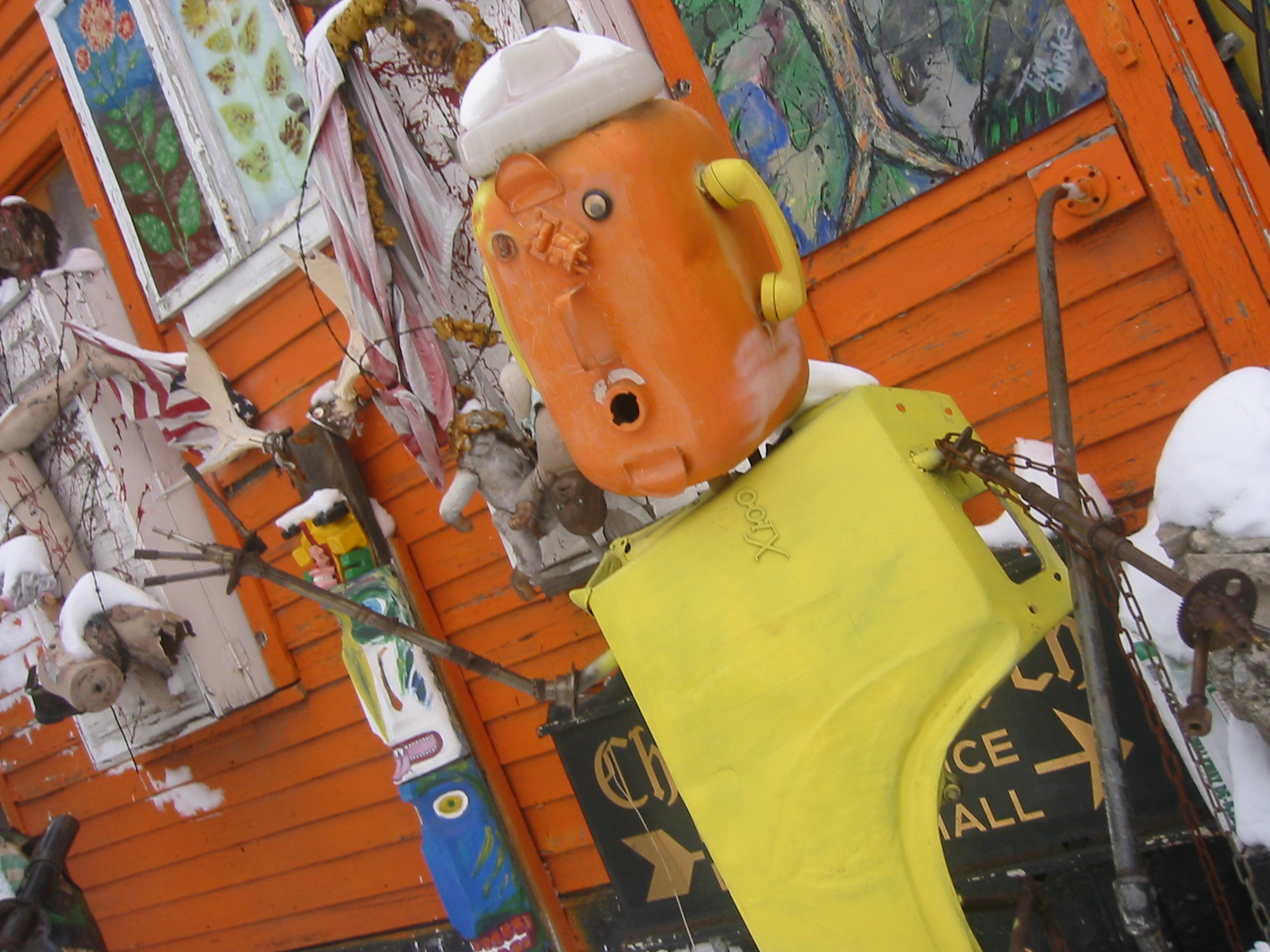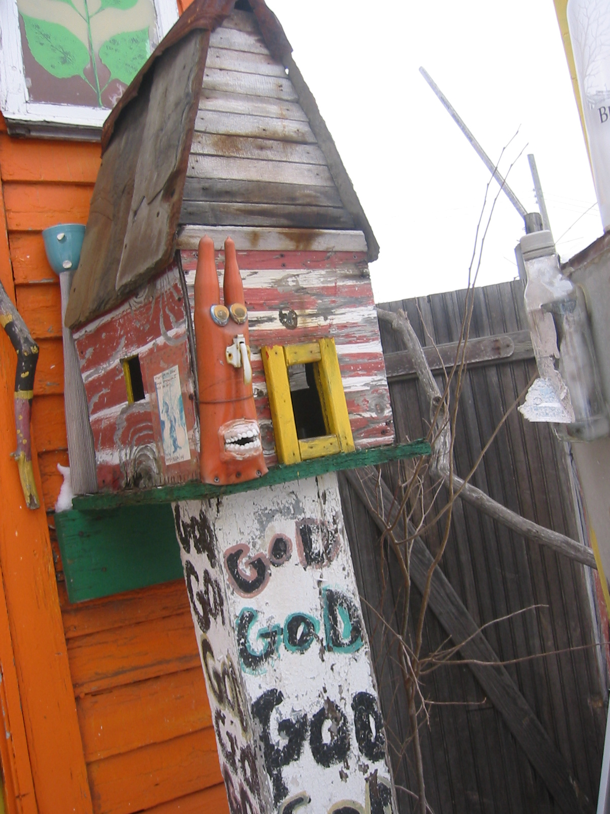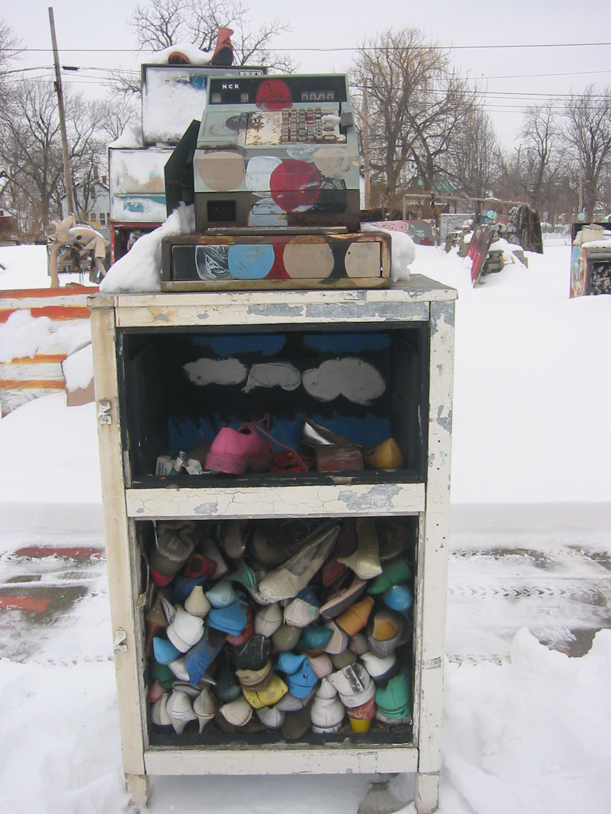 Yesterday I cleaned out a hallway that was filled with all kinds of junk, sorted it, and cleaned the space. The next step is to paint. I also found out about a volunteer day at an urban farm called Earth Works. They farm about 10 acres all over vacant lots. I pruned apple trees and pear trees. We also started some bed prep. The guy who runs Earth Works called me up later for some extra help. After a free lunch from the farm I headed towards a location one of the Trumbull folks told me to check out but not what would be there. It is this massive art project that has taken over a vacant block! I came back to the Trumbull and split fire wood all afternoon. Tomorrow night I’m going to help out at a bike co-op called the Hub.