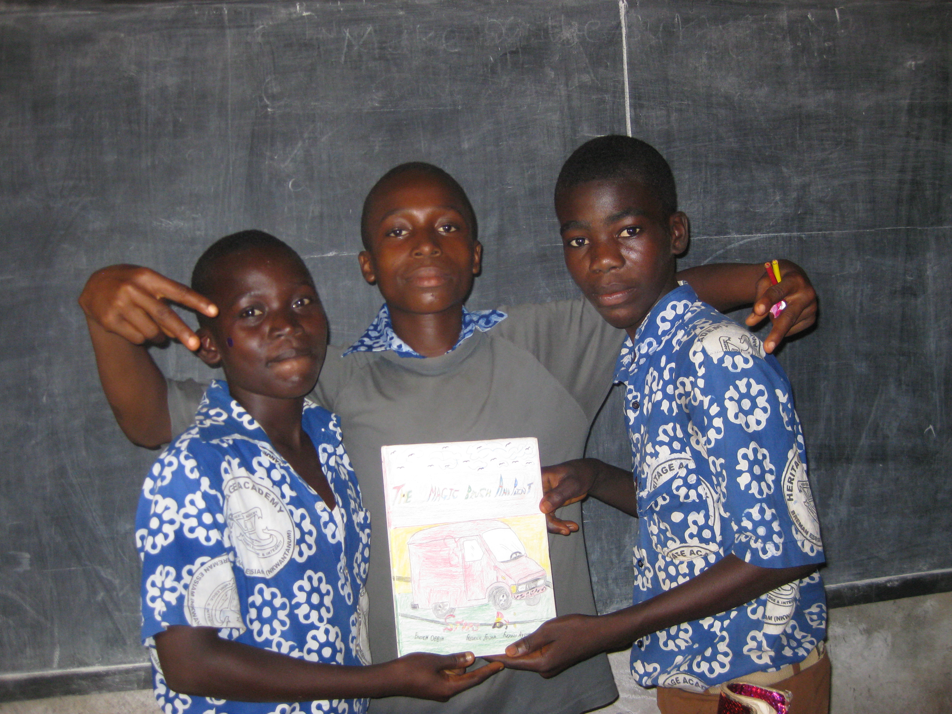 Wow. There is so much to think about here I hardly know where to begin. The incredible artwork from one who has had no lessons. The English. The basic needs he wishes for: a better a house, car, employment. The good news in what he doesn’t wish for: food, water, shelter, freedom from war. The fact that Patrick wears his baseball cap sideways. 🙂