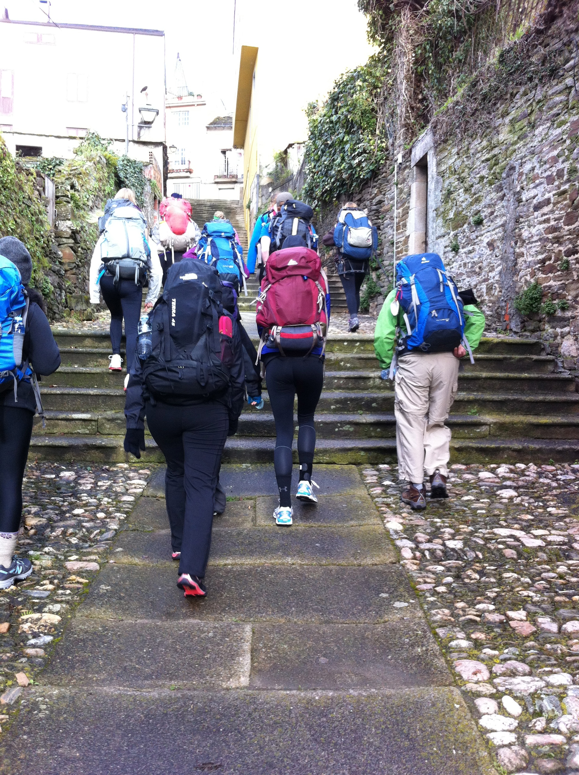 Our start was a slow one. The students stopped to admire the beautiful vistas and buildings in Sarria, organizing themselves for group photos. In spite of the late start, our packs felt light and spirits were very high. We were ready for this. Vamos!
