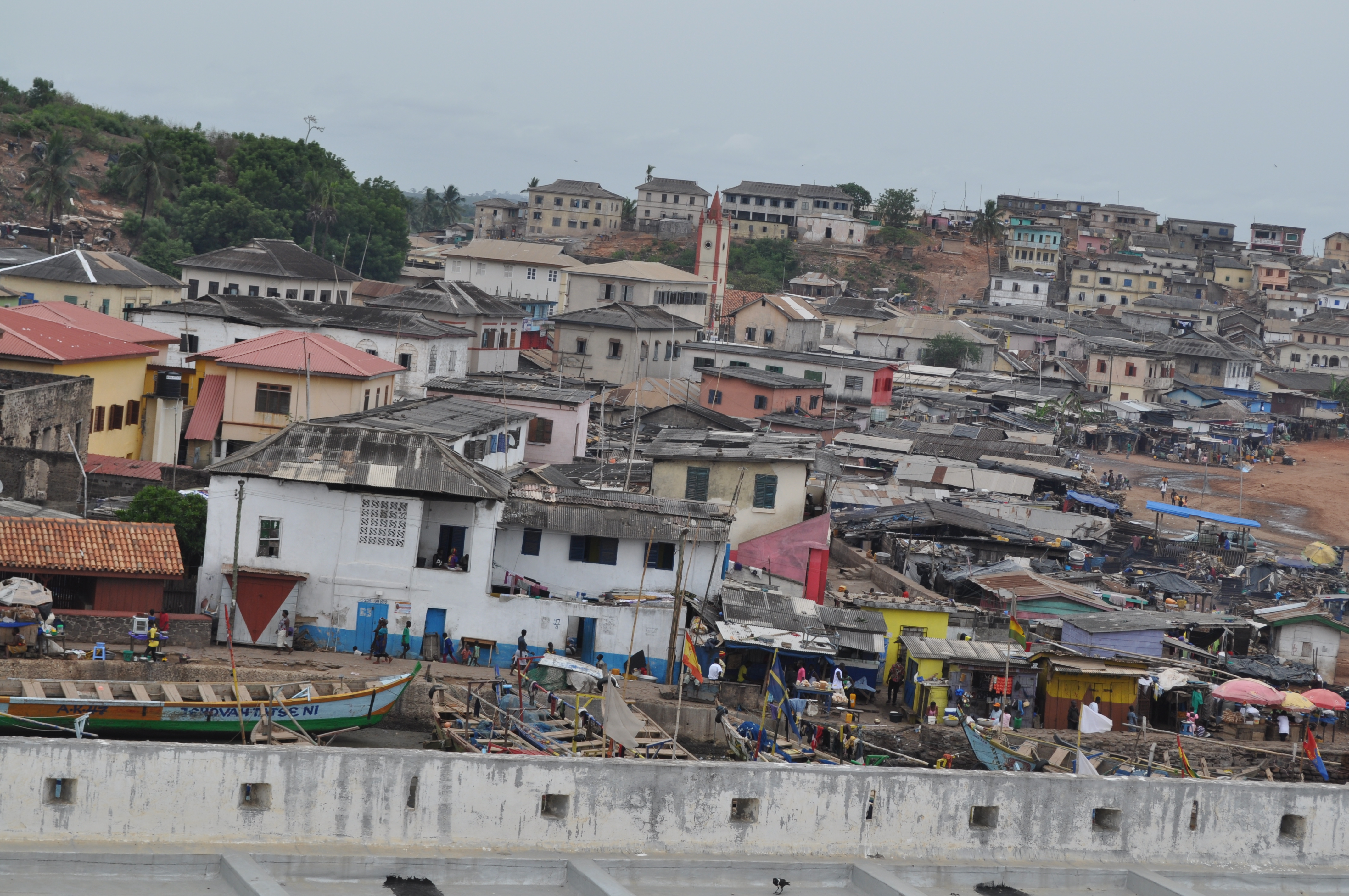 Today was a brief break from “rural” living and a respite in paradise (tourist traps). In the morning we made a two-hour drive and found ourselves in Elmina, touring its slave castle and practically pooping our pants over seeing all the obronis that weren’t in our group. Despite all the terrible things that happened in Elmina Slave Castle, the architecture was beautiful and the views from the buttresses were breathtaking. (Though being shut in one of the windowless cells for several moments by our tour guide was a little unsettling.)
