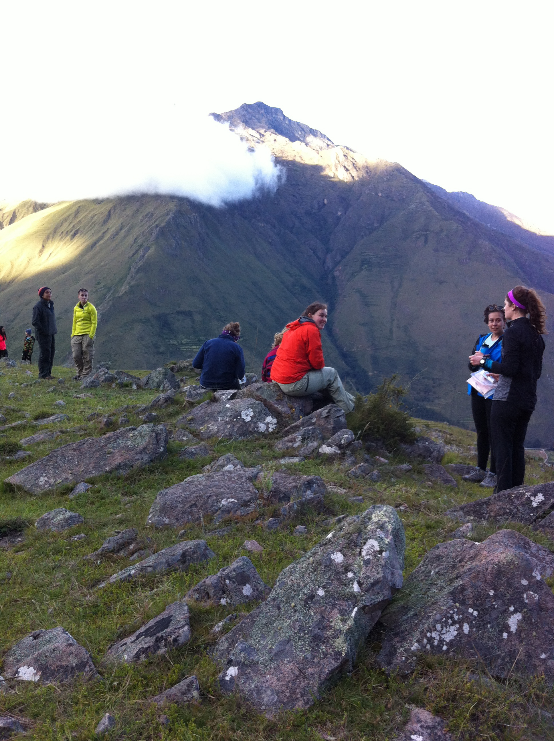After our time of reflection, about half the group climbed remaining way up to the summit to meet the Inti Punku – Quechua for ‘the door of the sun.’ I stayed behind with the rest of group. Each of the remaining students, Maria and I hiked to a rock and spent hours meditating. I was amazed by how natural and easy this meditation was for all. It was as if we were called to do so by some force outside ourselves. No one resisted the call of introspection. There were no skeptics. All arms were open to the experience.