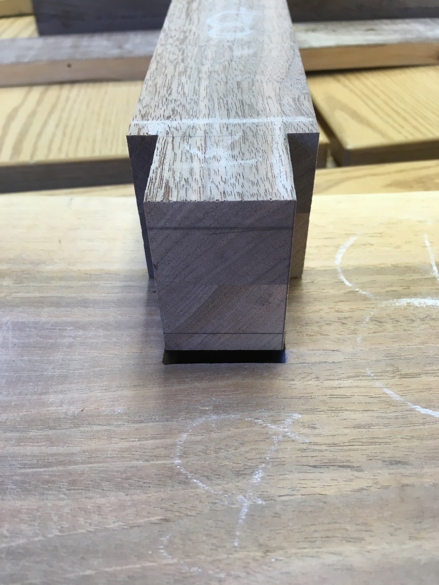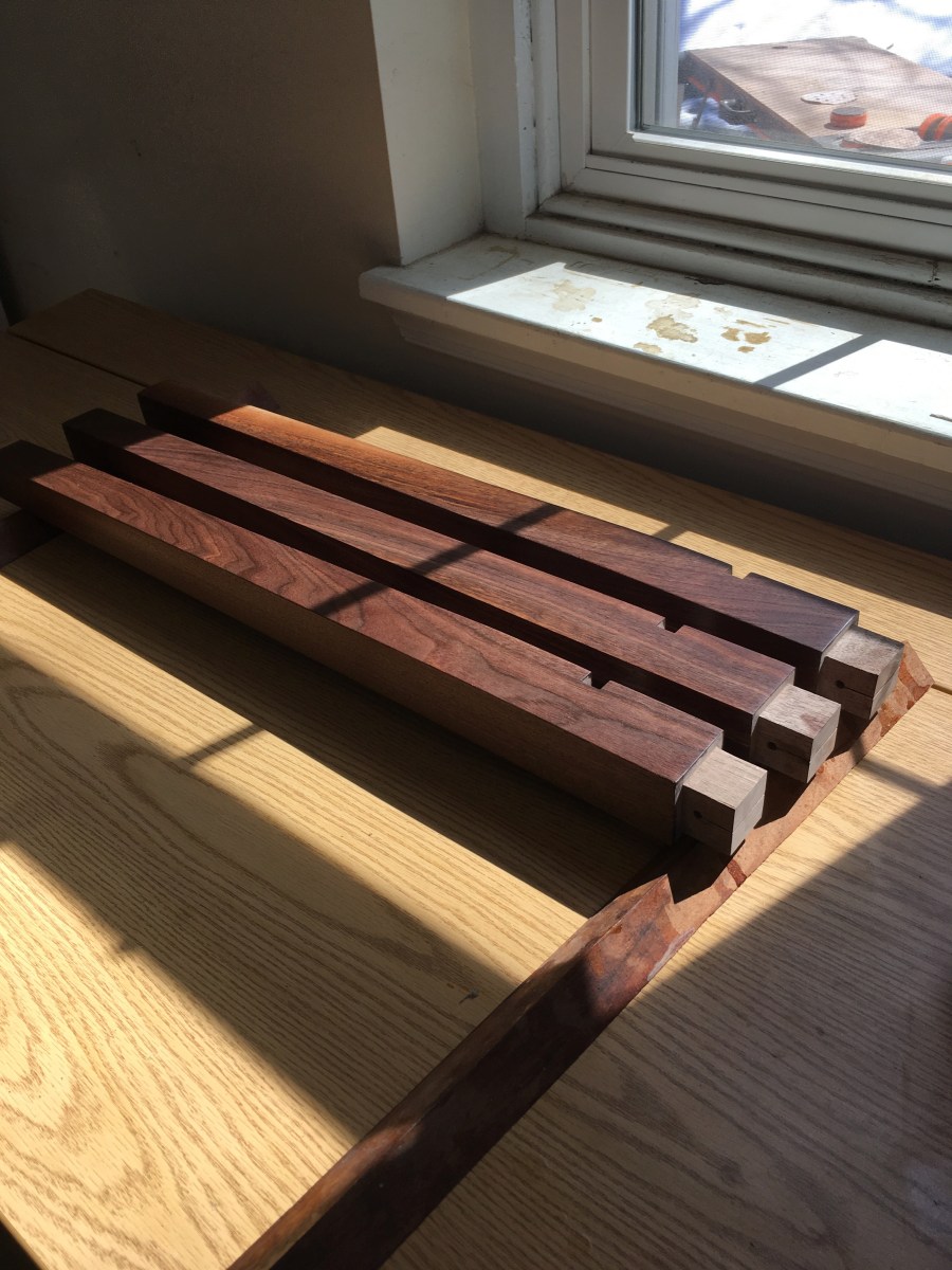 1. Walnut tabletop, with two mortises (holes) completed to satisfaction, two still to goIMG_0687.jpg