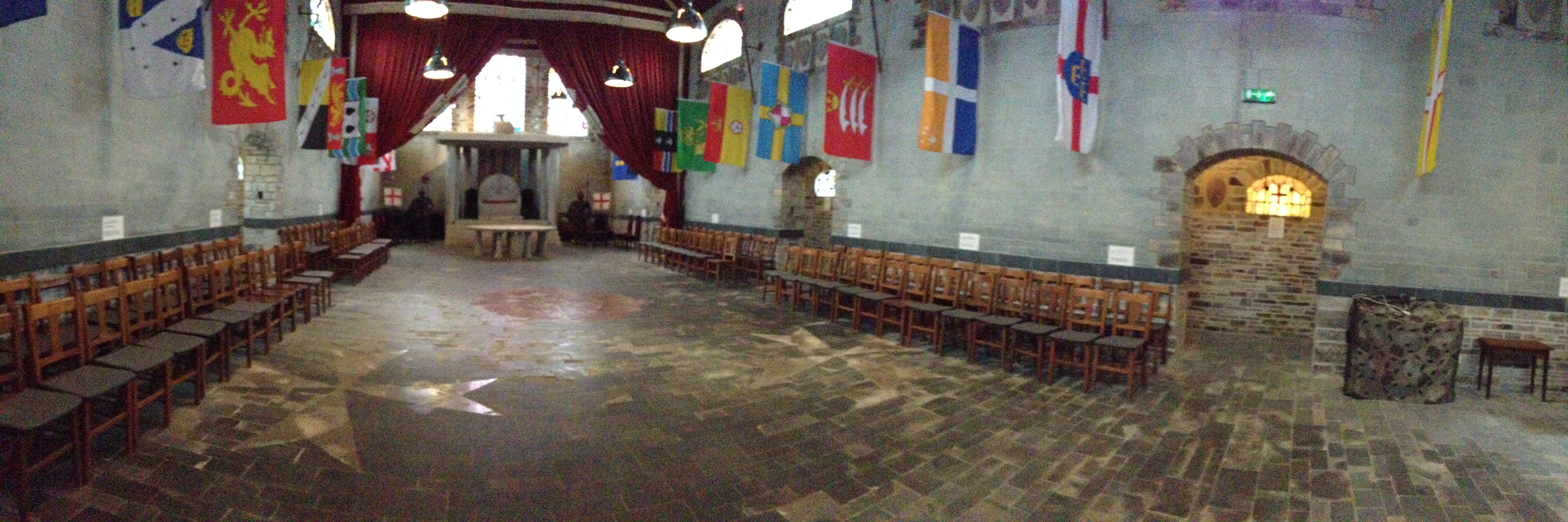 Visiting the castle took our entire morning, but in the afternoon we visited another location that I had also been anticipating: King Arthur’s Great Halls. The Halls were created by Frederick Thomas Glasscock in the early 1930s and are decked out by specially made paintings by William Hatherell depicting scenes in Arthur’s life and 73 stunning glass windows made by Veronica Whall.